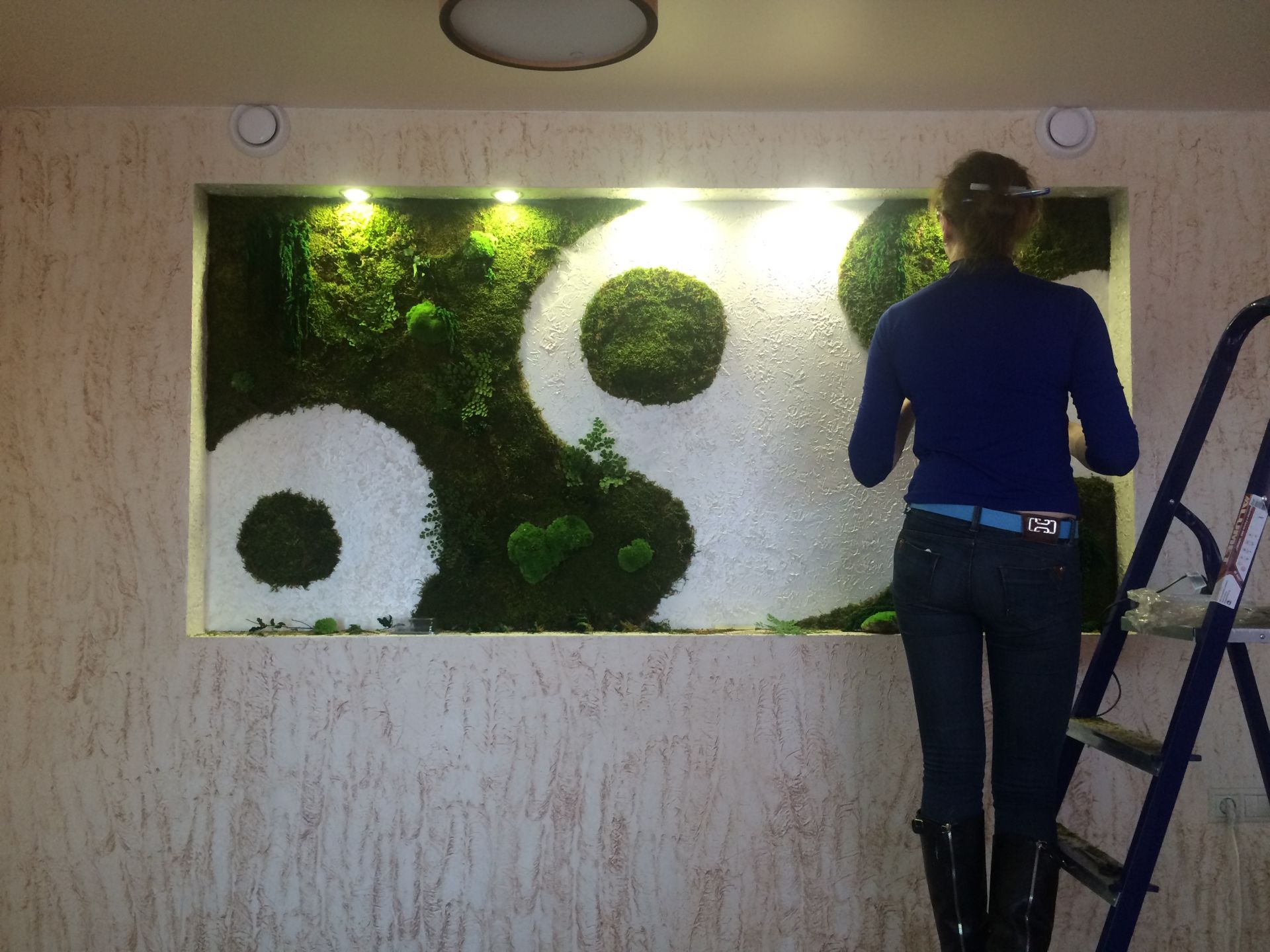 Предложение меня зацепило моментально - стабилизированный мох на стене. Не скажу, что мой дизайнер сразу его одобрил, скорее наоборот, она была против. Стабилизация ведь в новинку и многие не понимают всех плюсов, в т.ч. дизайнеры. Я настояла на своем.